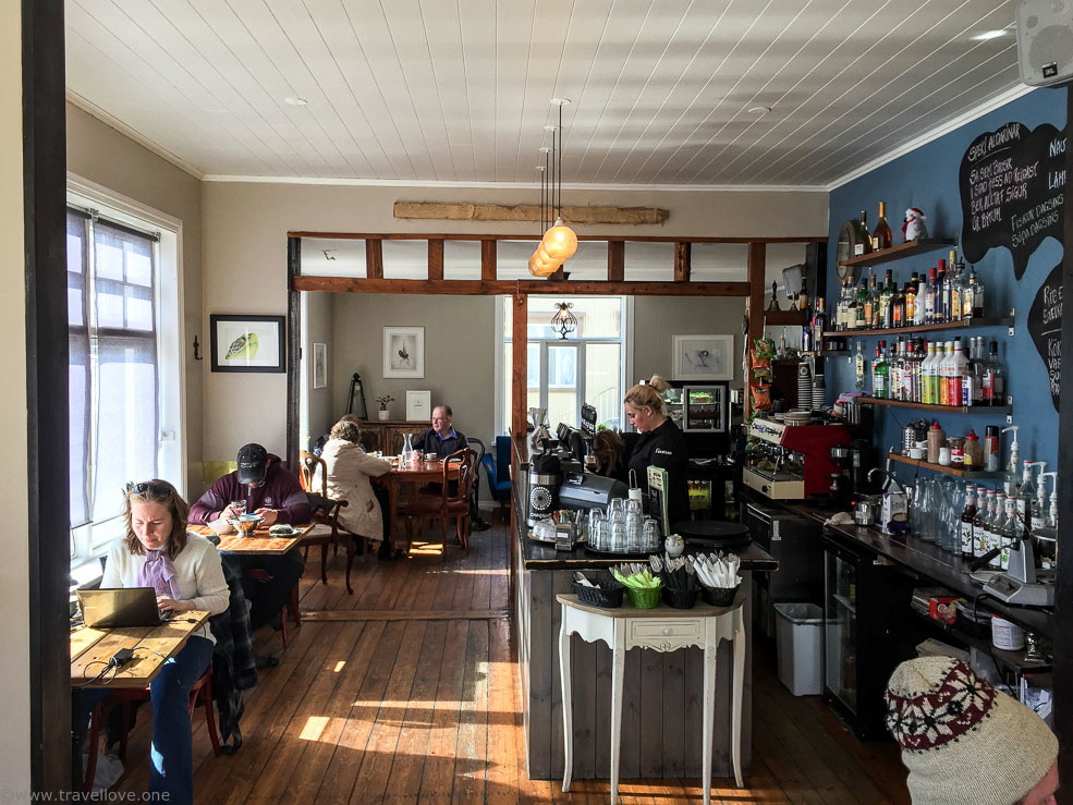 But Isafjördur was also deserted and due to the Pentecost holiday, all shops and most of the cafés were closed. However, we managed to find one. It was rather quaint and attended by guests from the ship and young locals alike. Some locals were talking, others just sat there drinking coffee and knitting.