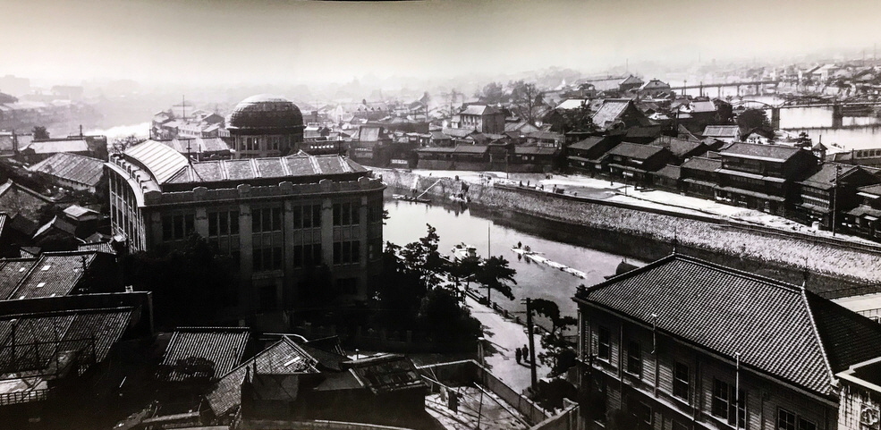 Als am 06. August 1945 um 8.15 Uhr der amerikanische B29-Bomber "Enola Gay" den ersten Atomschlag der Welt ausführte, blieb das ehemalige Gebäude der Industrie- und Handelskammer aus dem Jahr 1914 trotz der geringen Entfernung zum Abwurfpunkt (Hypocenter) von nur 160 m weitgehend bestehen.