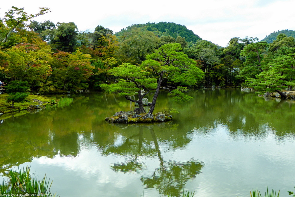 Als sich der bewaldete Garten öffnete, bot sich uns ein atemberaubend schöner Anblick. Ein großer See, in dessen tiefgrünem Wasser sich ein goldener Pavillon widerspiegelte, der am anderen Ufer errichtet war.