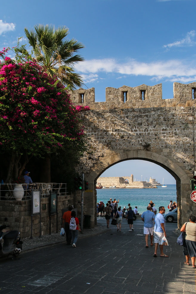Am Ende dieser Straße verließen wir die Altstadt durch das Milon Tor, durch das man schon das blaue Meer sehen konnte.