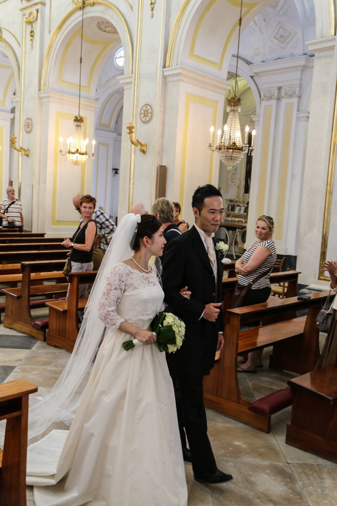 Fast am Meer angelangt trafen wir auf eine Kirche, in der gerade ein asiatisches Paar vom Schiff ganz alleine heiratete.